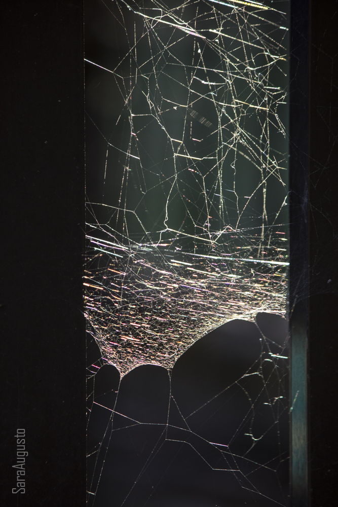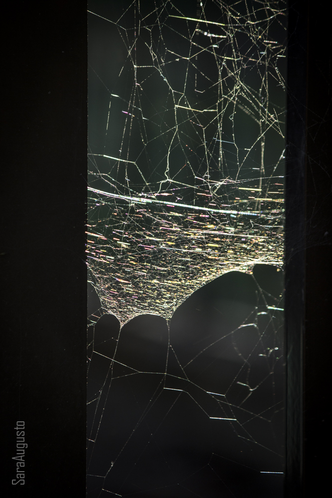 Parou por breves segundos e teve uma iluminação, se é que uma aranha tem destas coisas que se abrem no espírito. Não quero mais uma ordem na vida e não posso viver no caos. Parei e olhei-a com mais atenção. Que raio, aranha, cala-te, cala-te, e enteia-te. Pareceu-me que sorria. Não sei bem como é que ela fez aquilo, mas enrolou quatro patas num sorriso amargo, e com a quinta indicou-me a teia no portão.  Não posso entrar ali mais. Confessei que também não entraria. Está lá muita luz, continuou, e deslaçou o sorriso. Mas luz é bom, assim semeada de cores, prismada, imersa no fluxo da história… não me ouviu, suponho. Olhava para a teia com os olhos bem abertos. Não percebo como fiz isto. Nem percebo por que está assim. Tanta luz fere-me as patas. Não te fere os olhos? insisti. Não, fere-me as patas.